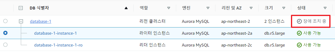 -. 상태값이 '장애 조치 중'으로 변경되며 라이터 인스턴스가 변경될 예정.