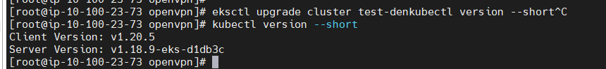 > 업그레이드 완료 후 'kubectl version --short'를 통해 확인