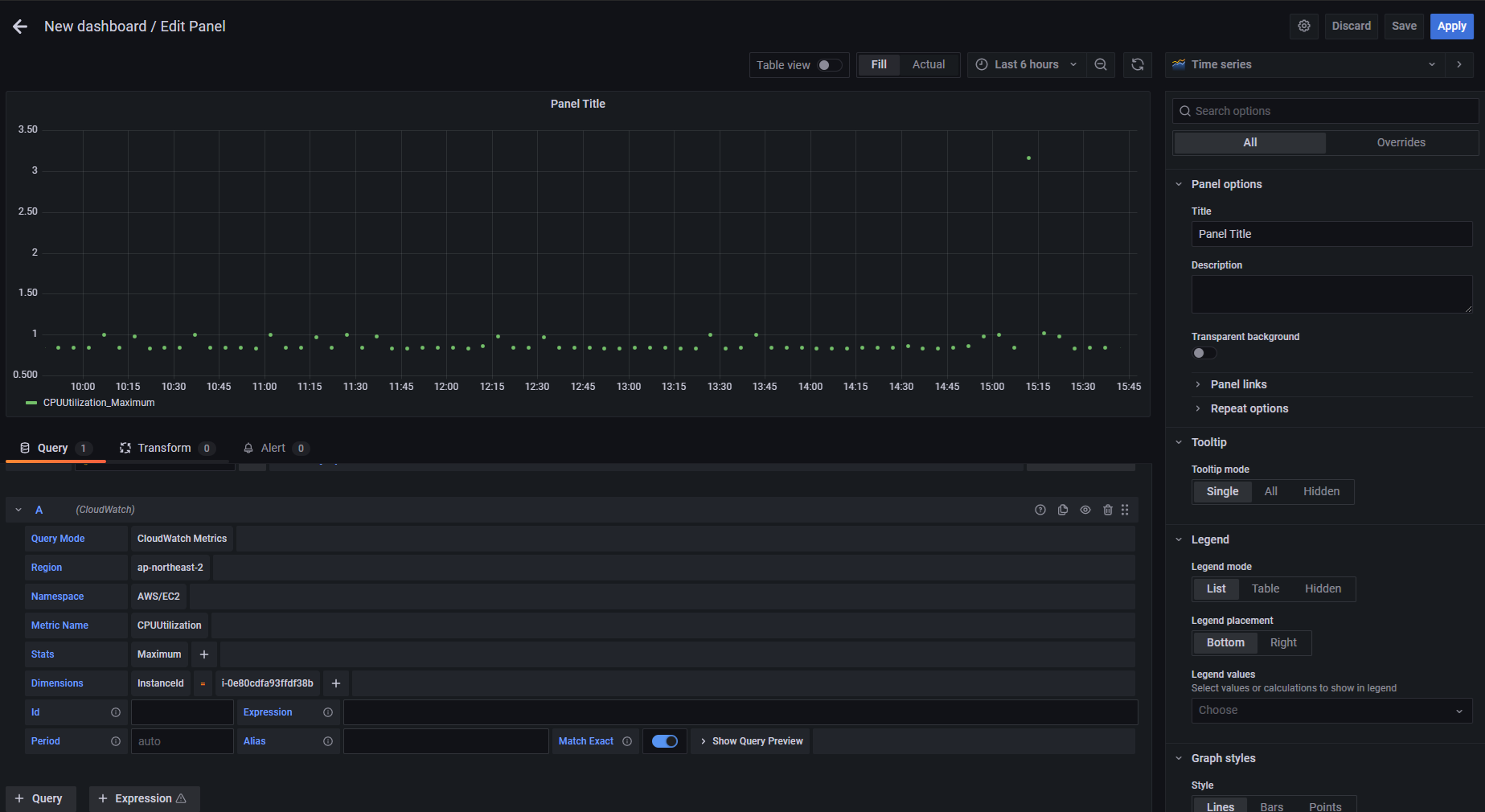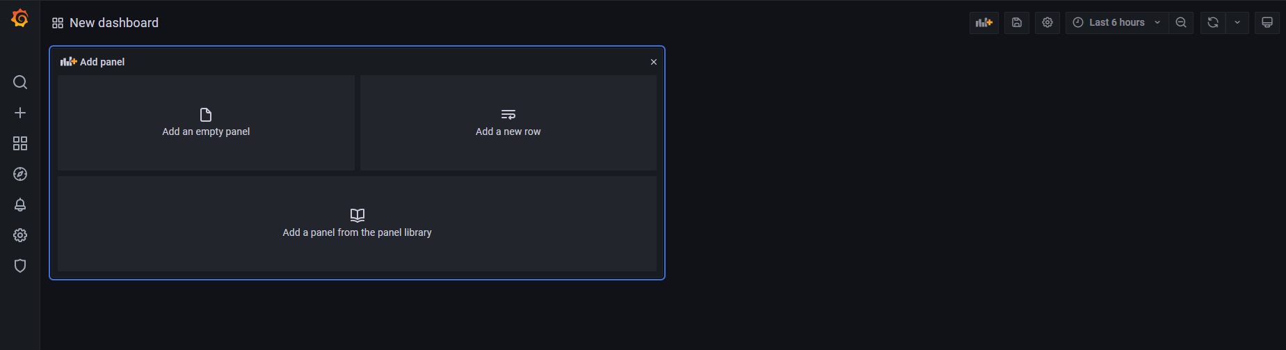 -. New dashboard 설정(add an empty panel)