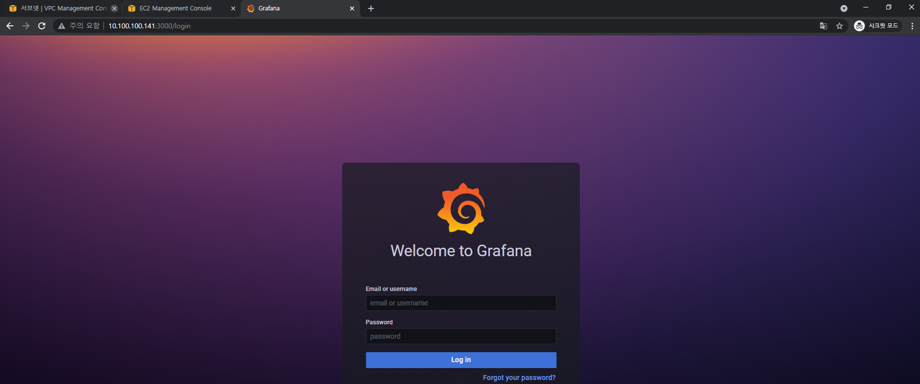 사용 포트는 3000번을 사용하며, Private 환경에 구축하였기에 OpenVPN 접속 후 해당 환경에 접속 가능합니다.