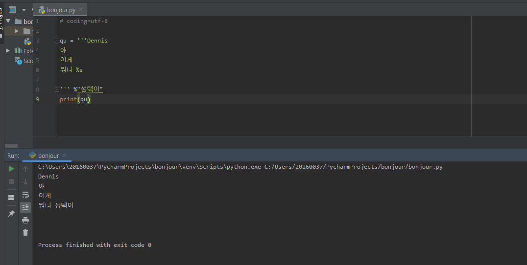 \" : "를 입력 그대로 받아옴.