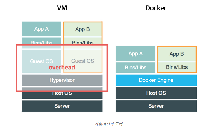 -. 새로운 컨테이너를 만드는데 걸리는 시간은 새로운 VM을 만드는 것보다 훨씬 빠름.
