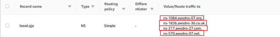 테스트를 위해 loool.qja를 만들었으며, 실제로 사용할 수는 없겠지만 생성이 완료되면 NameServer와 SOA 필드가 만들어지며, NameServer의 경우, 호스팅업체의 네임서버를 사용해도 되지만 특별하지 않으면 AWS 네임서버 사용하는 것도 무방.
