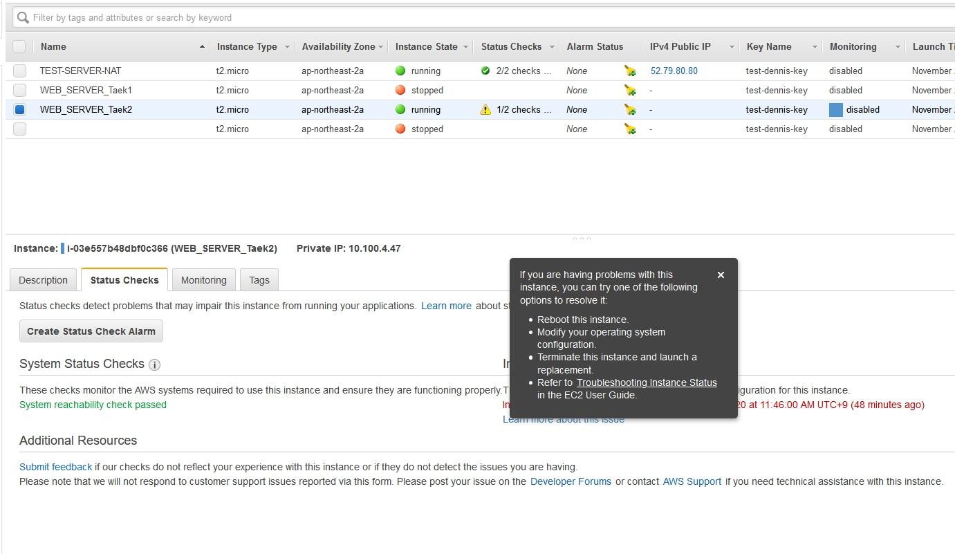 인스턴스 Status Check Error 발생