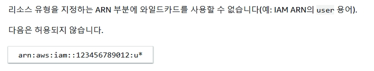 arn을 입력하여야 할 부분에 *를 사용하여 모든 arn을 검색하는 방법이 될까 싶어 시도해보았지만..내가 찾는것과는 다르지만 IAM의 무언가를 추출할 때도 ARN이 필요한 것을 알았으며, AWS측에서 가이드하는 아래 내용을 보고 포기.