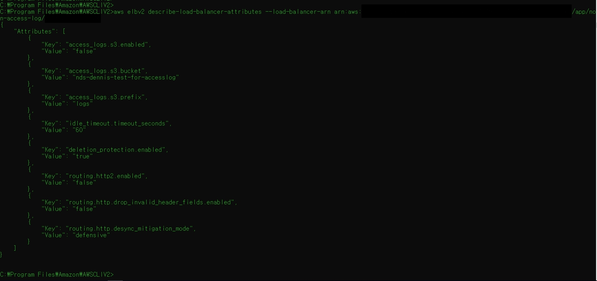 aws elbv2 describe-load-balancer-attributes --load-balancer-arn arn:aws:(내소중한 정보)