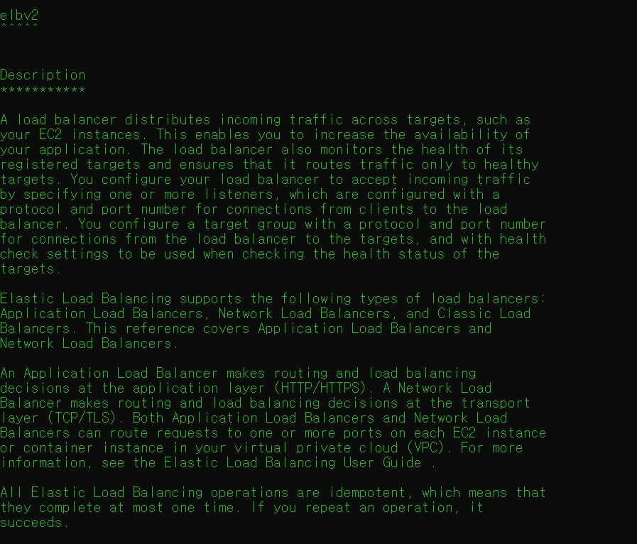 *elbv2를 통해 ALB, NLB, CLB 모두 확인할 수 있는 명령어이며, 'elb'명령어도 있으니 필요에 따라 참고해서 사용하면 됨.