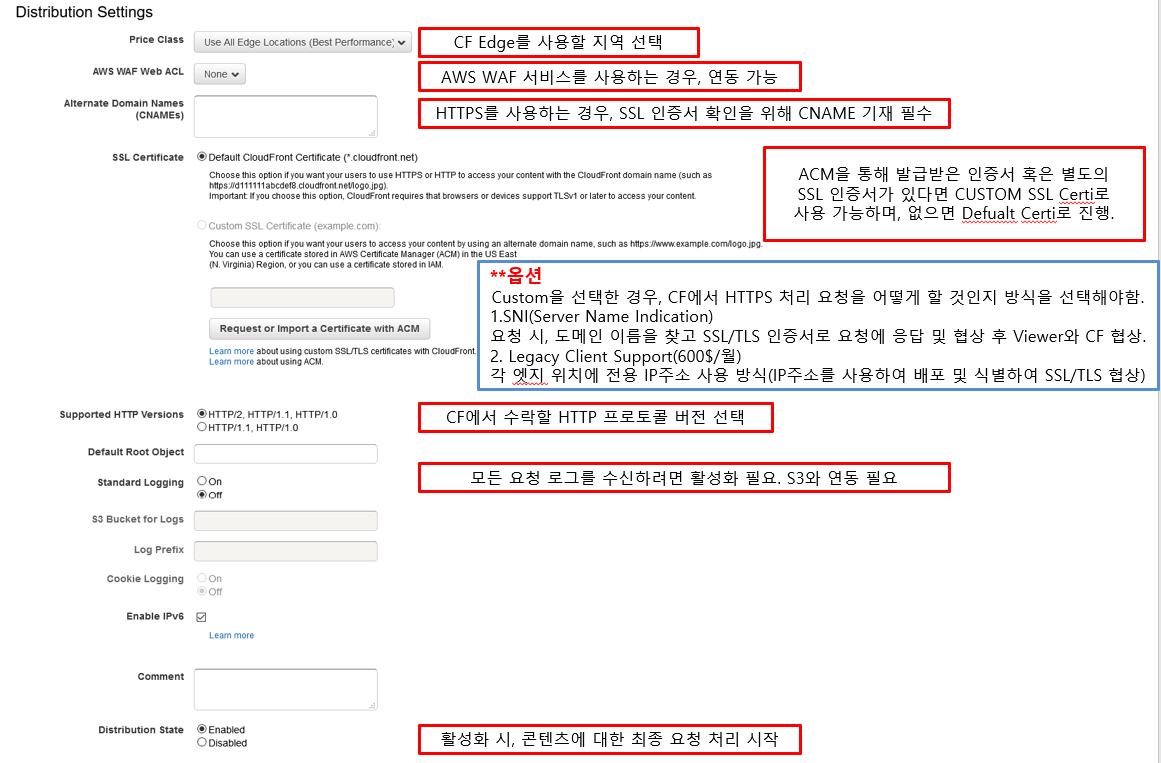 CF 설정 방법은 생성하면서 해당하는 부분의 정보를 확인해가며 만들었음.