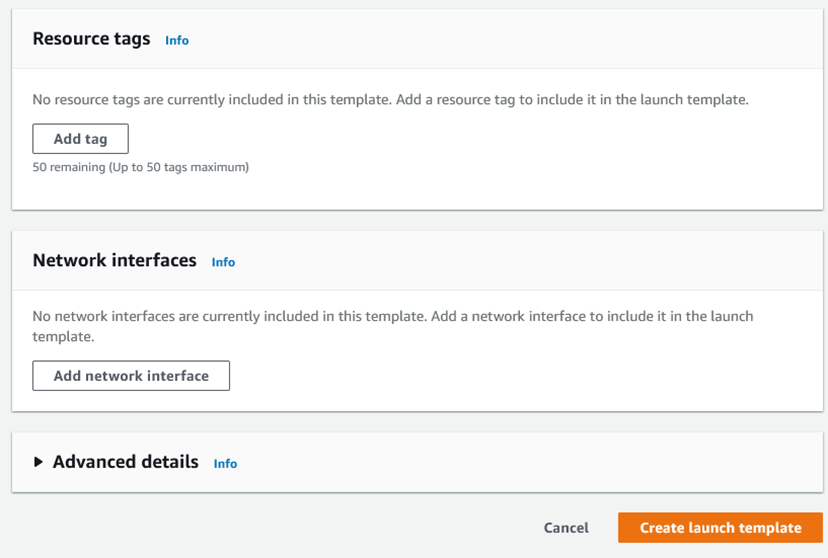 Network Interface : 생성되는 인스턴스에 특정 Private IP를 지정할 수 없지만, 퍼블릭IP 자동할당 등을 지정할 수 있음.