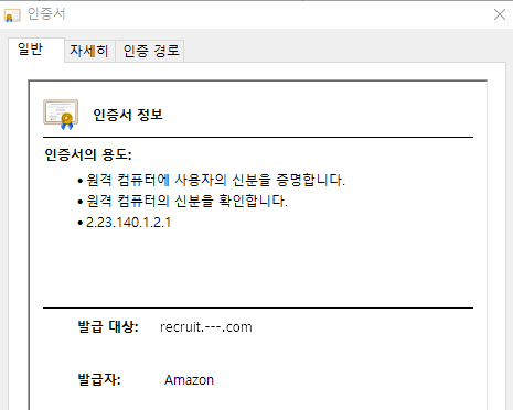 인터넷 창에서 https://recruit.---.com 을 입력하여, 인증서를 확인.
