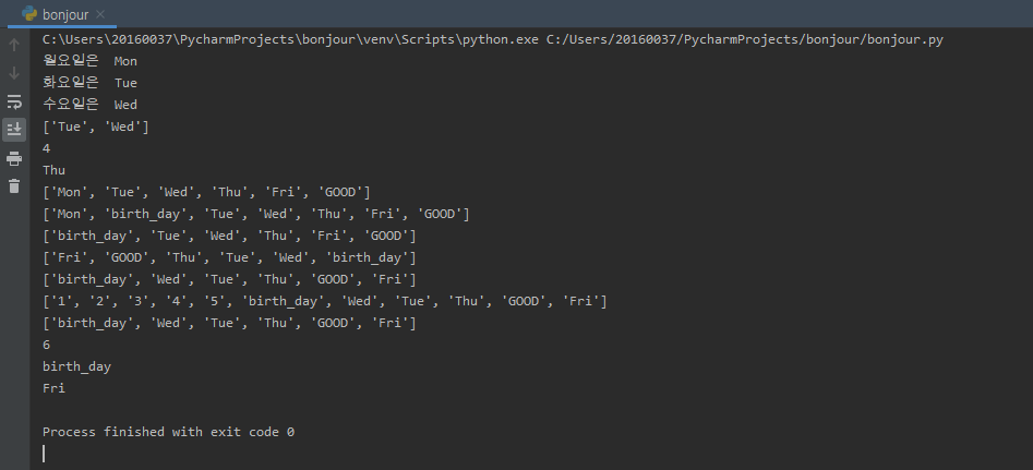 8행 : Kor_dic Key 출력 (순서 섞임)