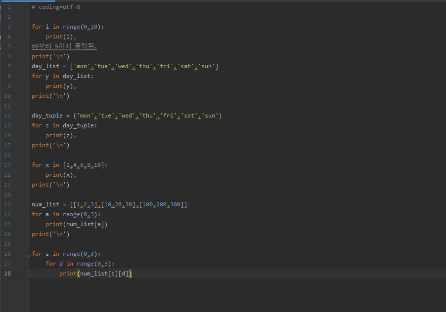 -. for i in (list, tuple, range 등이 올 수 있음)